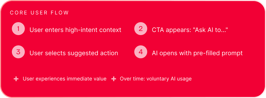 Pre-filled prompts remove the biggest barrier. Users don't want to think about what to ask.