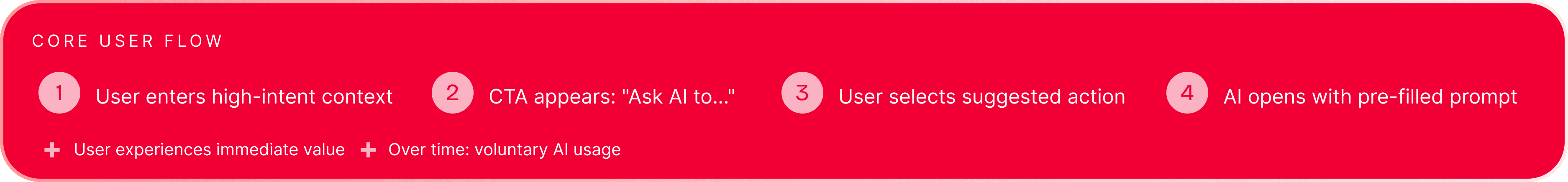 Despite strong AI capabilities, awork AI was not becoming a habitual part of users’ workflows. » Users had to think too hard about what to ask the AI » AI entry points felt disconnected from real work moments » First-time usage required initiative and creativity » Repeated usage required memory and motivation